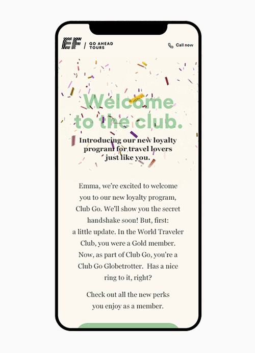 The name Club Go was inspired by Go Ahead’s beginnings as “Club EF.” We chose it to capture the brand’s history and its mission to connect travelers to the world.